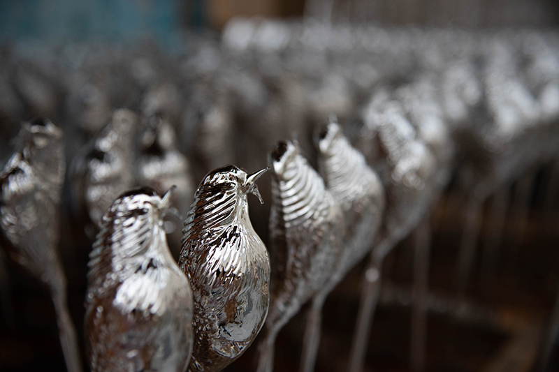 They clip onto any branch naturally, the way a real bird would land. And like real birds, no two are ever quite exactly identical. Each one hand-painted, each one a little different from the last.